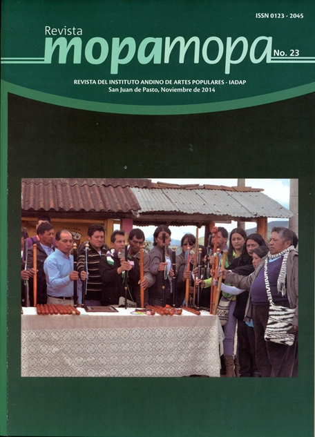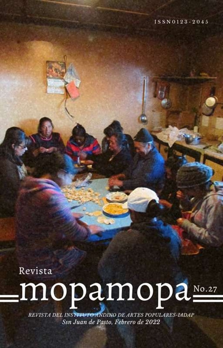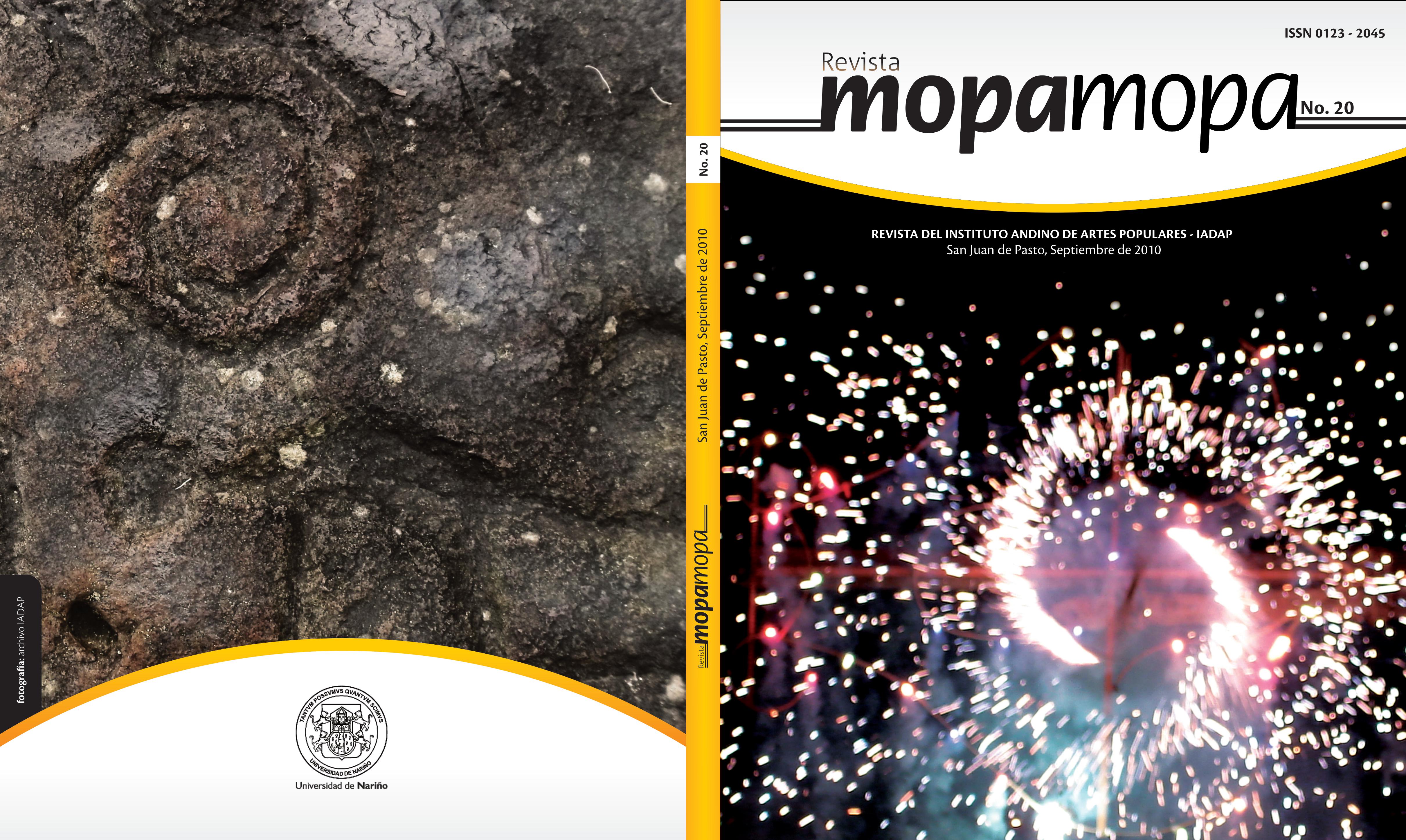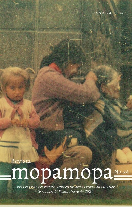 Vol. 1 Núm. 27 (2020)El Instituto Andino de Artes Populares (IADAP), de la Universidad de Nariño, publica anualmente la revista Mopa Mopa. Desde su primera edición, en el año 1983, ha estado ligada a querencias y sensibilidades específicas en complot con la expresión de la libertad y la creatividad de las artes populares en el vivir de nuestros entornos culturales y territoriales invisibles o invisibilizados.
